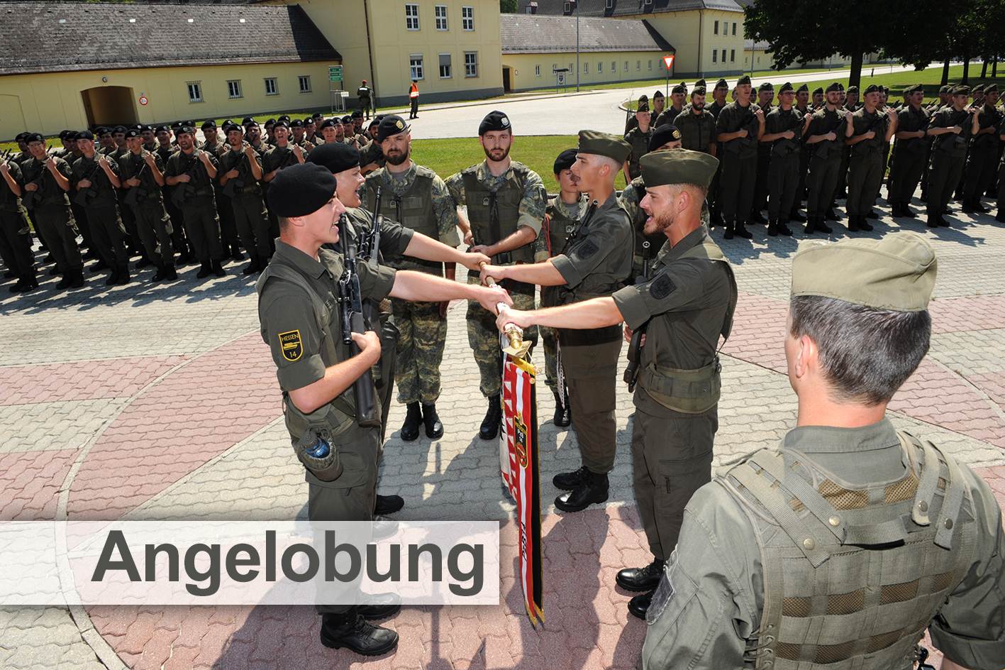 Foto: BMLV Fritz Wiederstein. Je zwei Soldaten des Panzerbataillons 14 aus Wels und der Luftunterstützung aus Hörsching leisten stellvertretend für ihre Kameraden den Eid auf der Standarte des Panzerbataillons 14.
