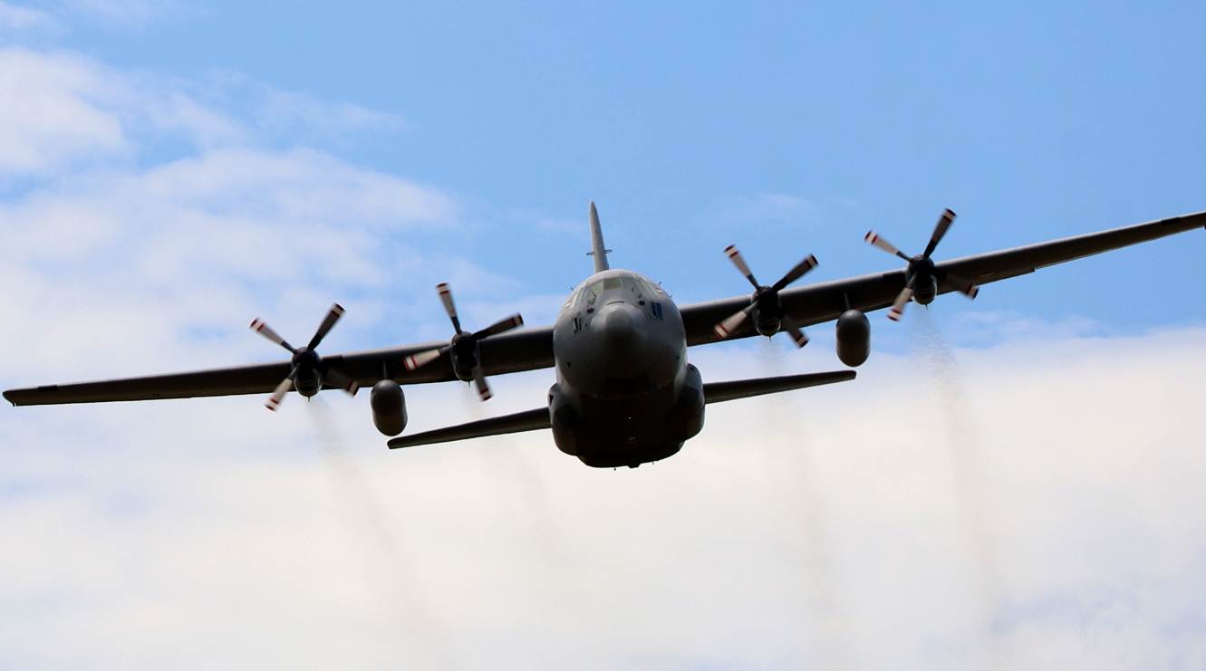 Die Piloten des Bundesheeres übten Starts und Landungenen mit dem militärischen Transportflugzeug – Lockheed L-100 Hercules – am Flugplatz Welser Heide.