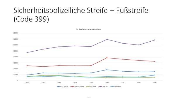 Durch zu wenig Personal nur 1/3 von Fußstreifen im Vergleich zu Villach. Der von der Bevölkerung immer wieder geforderte „Polizist zum Angreifen“ ist in Wels mit 36 Minuten durchschnittliche „Fußstreife“ pro Woche definitiv nicht gegeben!