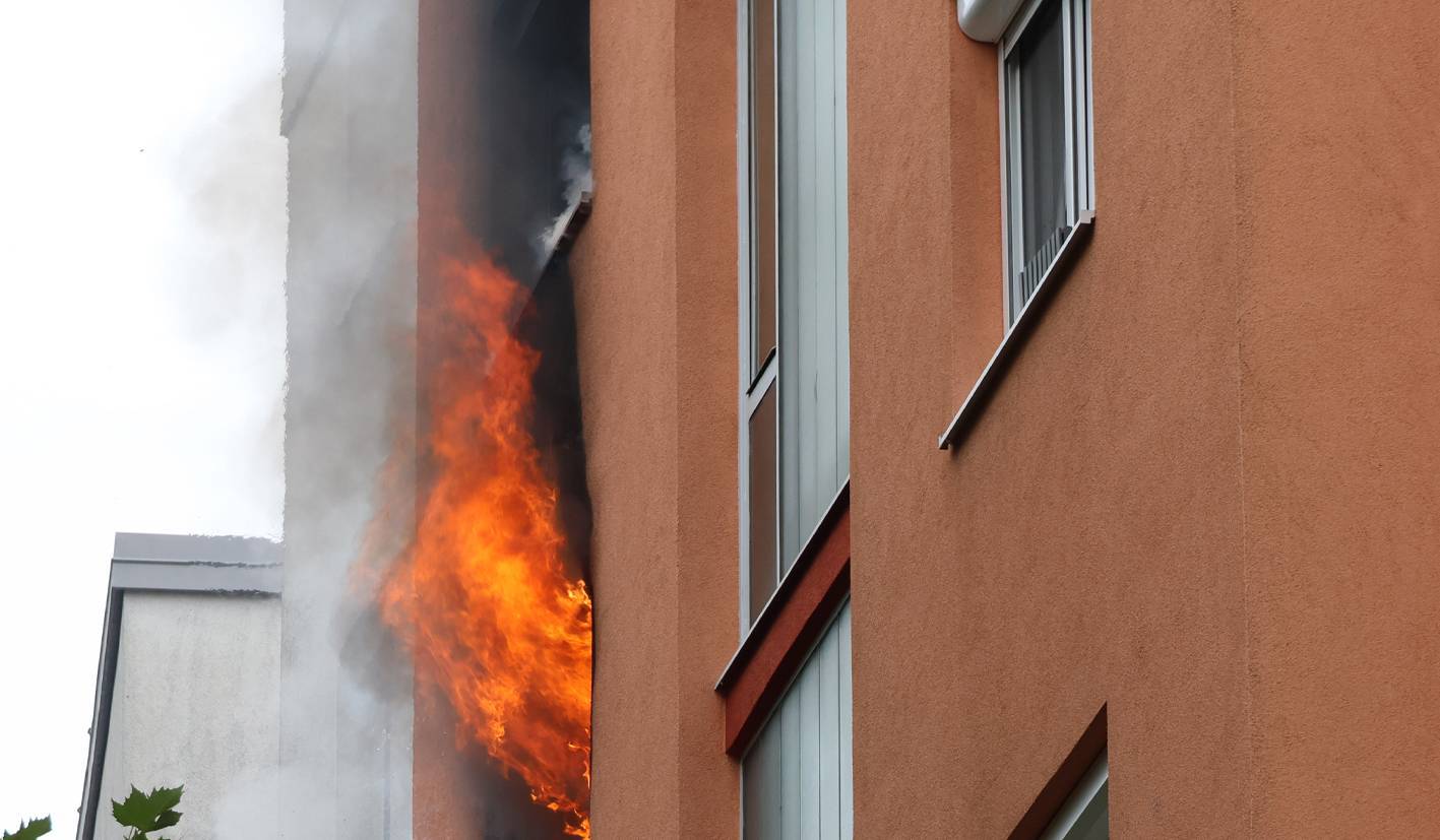 Beim Eintreffen der Feuerwehr-Einsatzkräfte schlugen bereits Flammen aus einem Fenster und drohten auf die darüber liegenden Stockwerke überzugreifen.